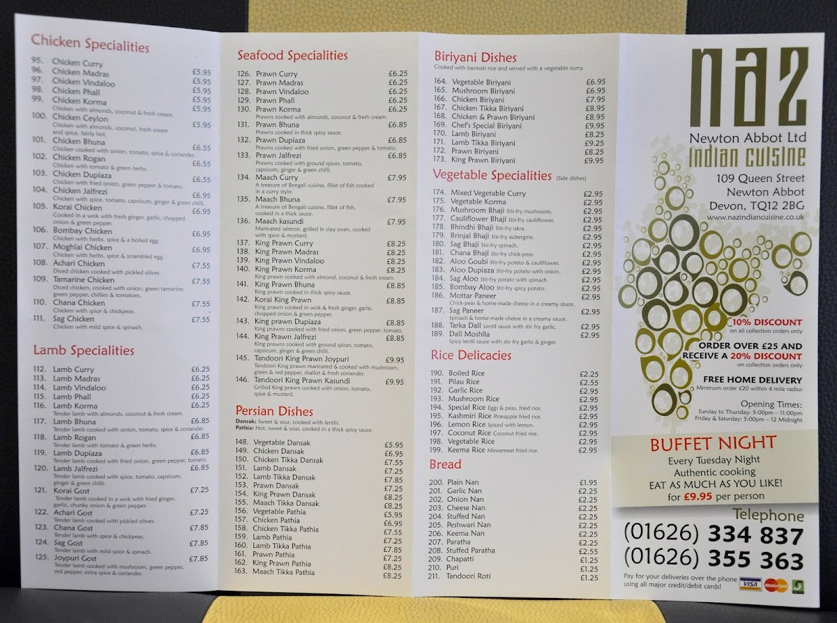 Overall, the menu at Naz Indian delivers a well-rounded and satisfying experience, blending classic flavors with approachable options for a wide range of diners. Signature items like the Chicken Tikka stand out for their rich marination and balanced spices, while the Karahi offers a hearty, aromatic depth that reflects traditional cooking techniques. The All You Can Eat Buffet provides excellent value and variety, allowing guests to explore multiple dishes in one sitting. Complementary touches such as the crisp Starter Papadam add texture at the beginning of the meal, and beverages like Jasmine Tea and Morning Coffee round off the dining experience with comforting, familiar notes. Altogether, the menu feels thoughtfully curated, offering both quality and variety that leave a lasting positive impression.